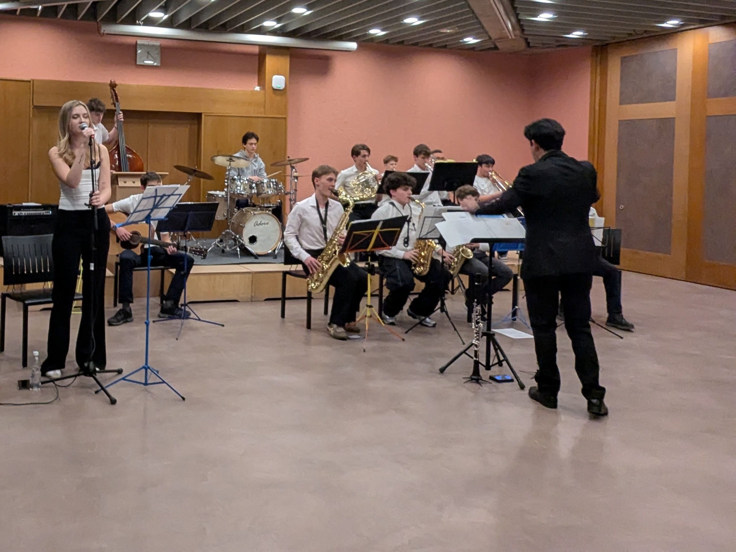Bei einem feinen Nachtessen stossen wir im Saal des Restaurant iwaz aufs neue Jahr an. Zur musikalischen Umrahmung spielt unter der Leitung von Oscar Velasquez die MZO Big Band auf, also eine Formation von jungen Leuten aus unserer Region.